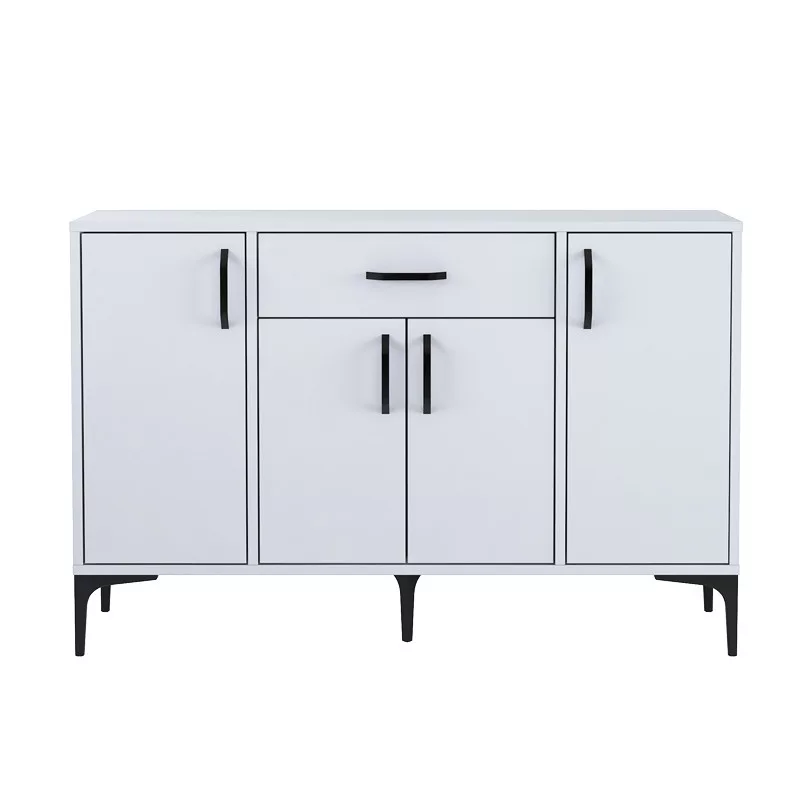 Luther sideboard pakoworld white melamine-leg black metal 120x40x78.5cm