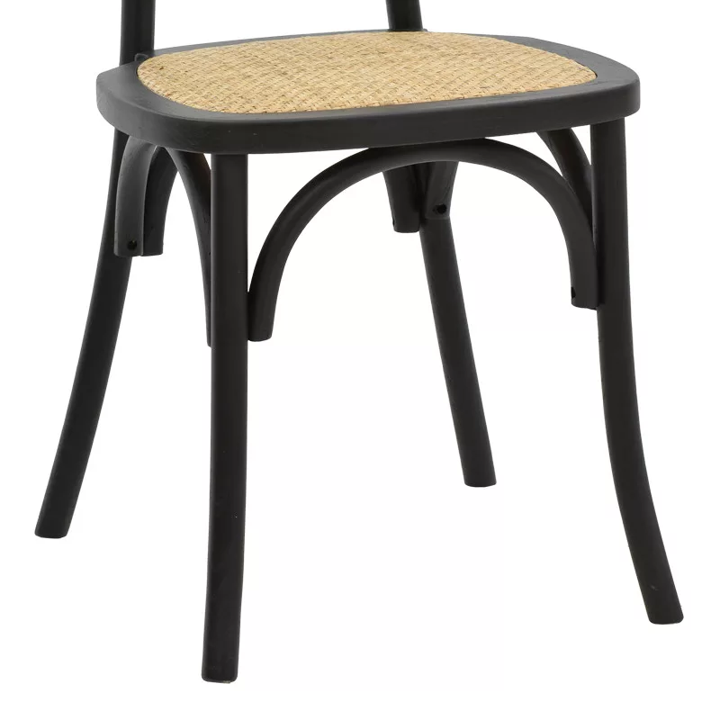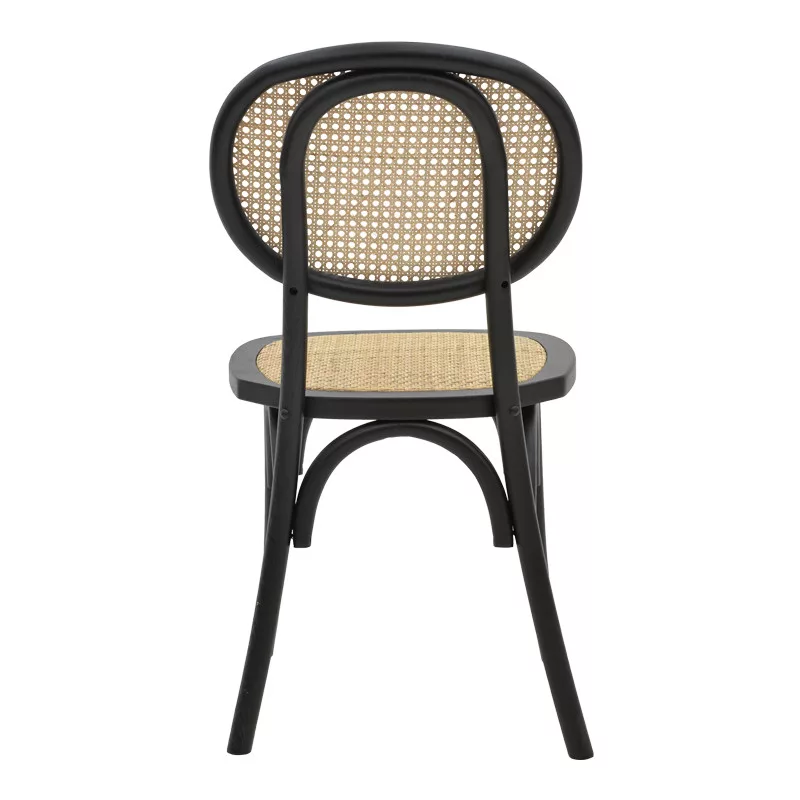 Zoel stackable pakoworld chair black beech wood-natural rattan 45x52x82cm