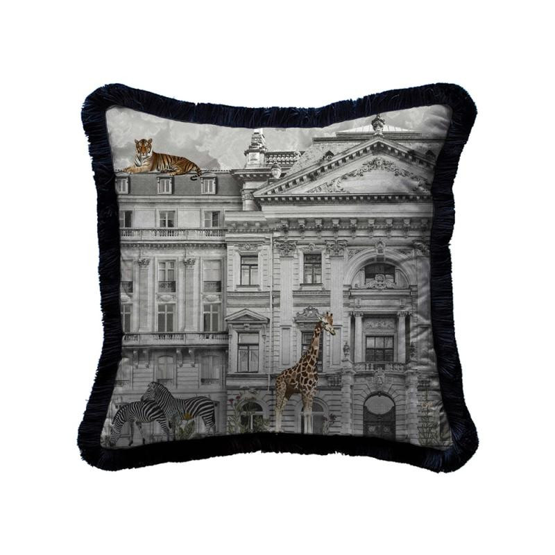 45cmx45cm nyomott bársony díszpárna, rejtett zipzárral, töméssel együtt. Mindkét oldalán azonos nyomattal, zebrabojttal.