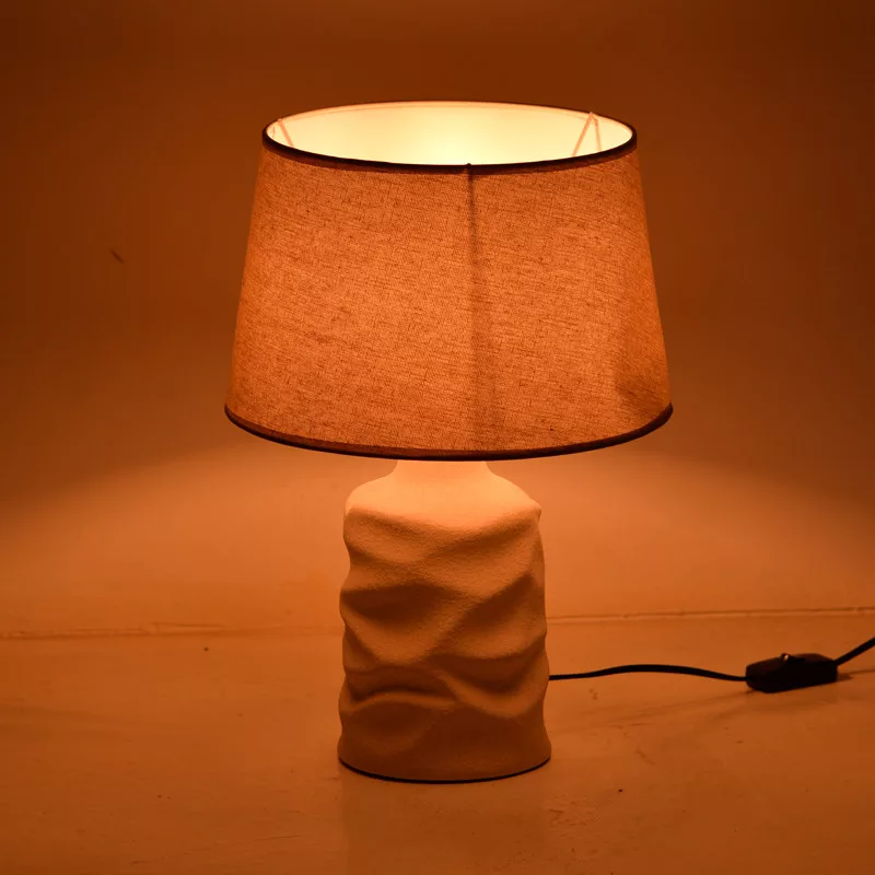 Its striking base features a unique texture with soft, wave-like lines that add depth and warmth. The simple lampshade perfectly complements the base, diffusing a soft, even light that creates a soothing and welcoming atmosphere.