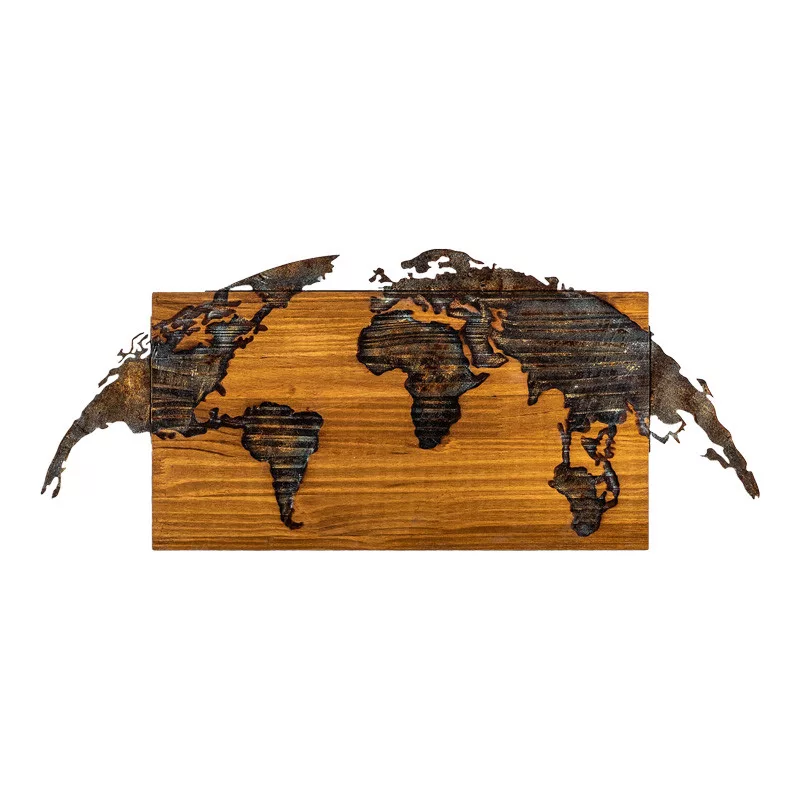 This wooden world map is an impressive and rustic addition to your wall! It's the perfect choice to bring a touch of global inspiration into your space.
