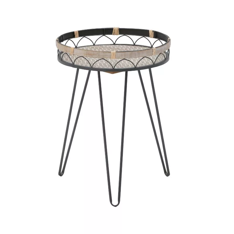 Coffee table Erzmo Inart natural-black metal-wood Φ40x56cm