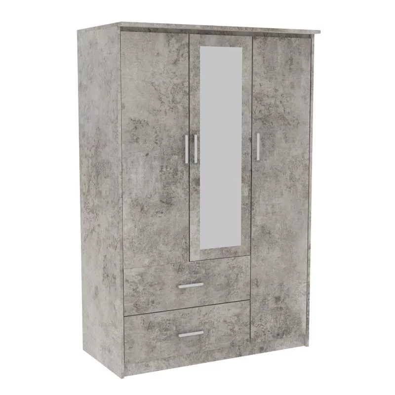 Wardrobe Olympus pakoworld with 3 doors and drawers+mirror in antique anthracite colour 120x57x183