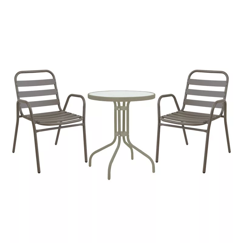 • Sturdy frame made of premium-quality metal, resistant to wear and time. The seat and backrest sections are made of aluminum slats. The metal provides durability and stability, while the aluminum slats add lightness and a modern touch to the design. This chair is ideal for outdoor use, as aluminum's weather resistance makes it highly durable against sun exposure and humidity.