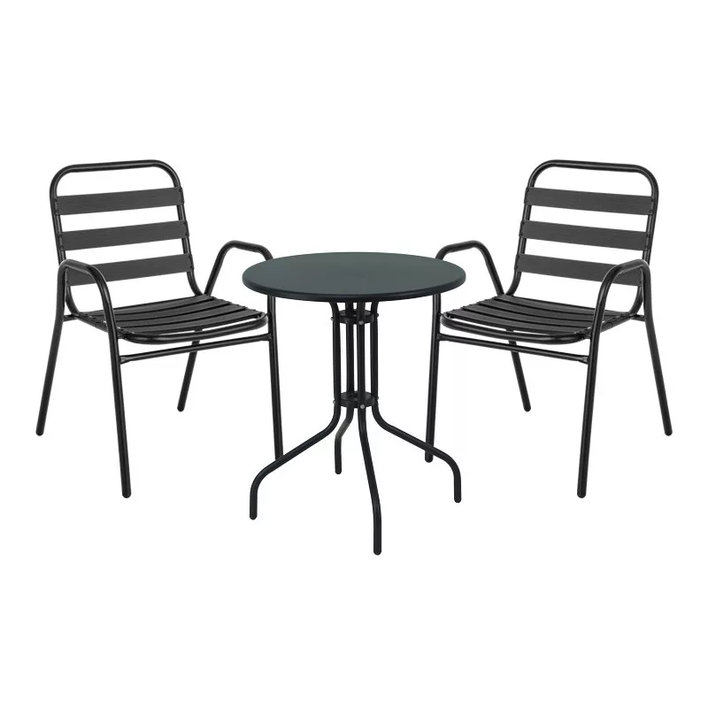 • Sturdy frame made of premium-quality metal, resistant to wear and time, with seat and backrest made of aluminum slats. The metal frame provides durability and stability, while the aluminum slats add lightness and a modern touch to the design.