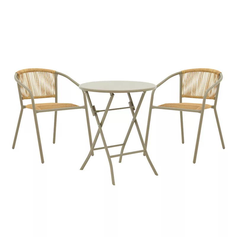 Albero-Lindaria Dining Set by Pakoworld – 3 Pieces – Champagne FinishThe Albero-Lindaria dining set combines functionality, style, and quality, offering an excellent solution for your outdoor space. It is an ideal choice for those looking for a stylish, comfortable, and durable set to enjoy their coffee or meals in the garden or on the balcony.