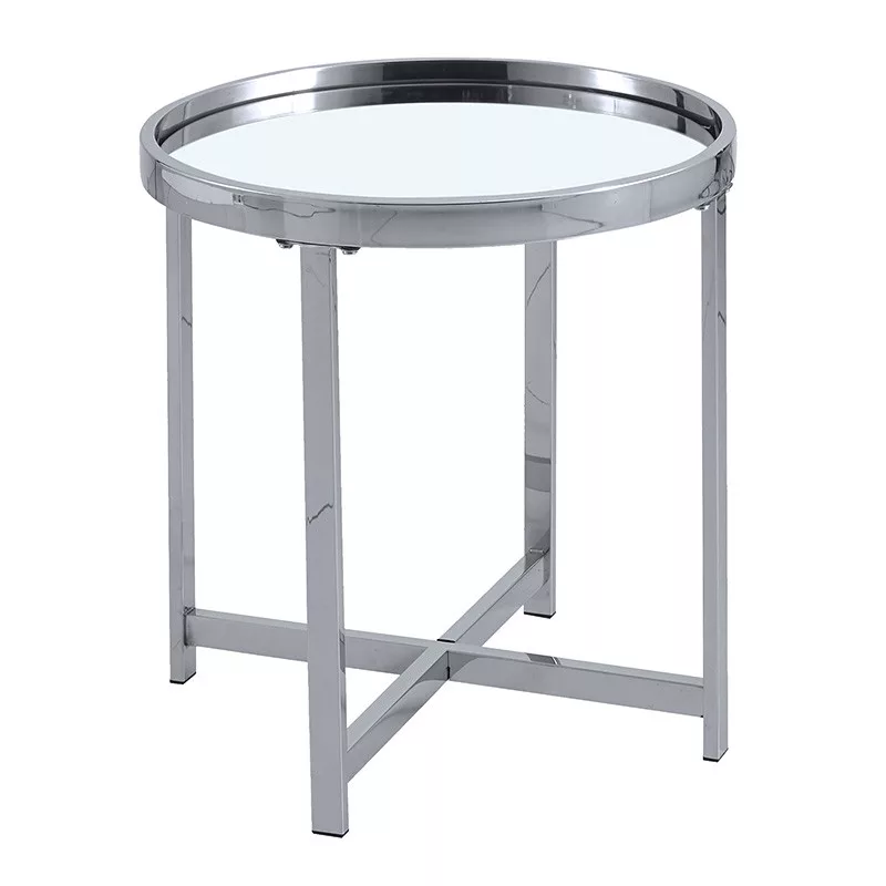 Side table for living room Tristan pakoworld steel silver-glass D55x55cm