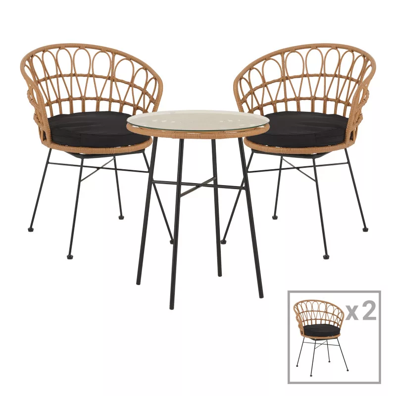 Dining table Felicia-Gaus pakoworld set of 3 pe rattan in natural shade-black metal Φ60x74cmDo you want a durable dining table for your balcony or garden that will aesthetically upgrade your space? The Felicia-Gaus garden series is ideal for you as it combines aesthetics with quality construction.
