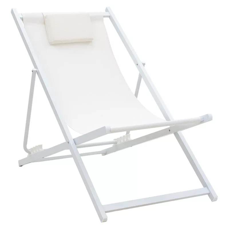 Professional chaise longue Corte pakoworld aluminum white-fabric textilene beige