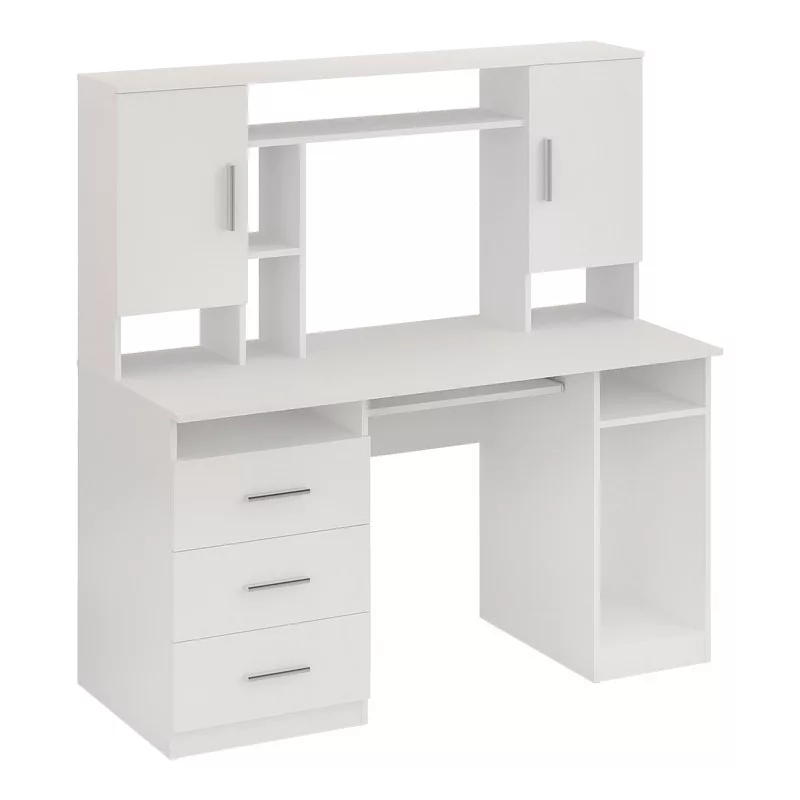 - Includes a white desk with integrated drawers, shelves, and cabinets for storing your stationery and other handy accessories.