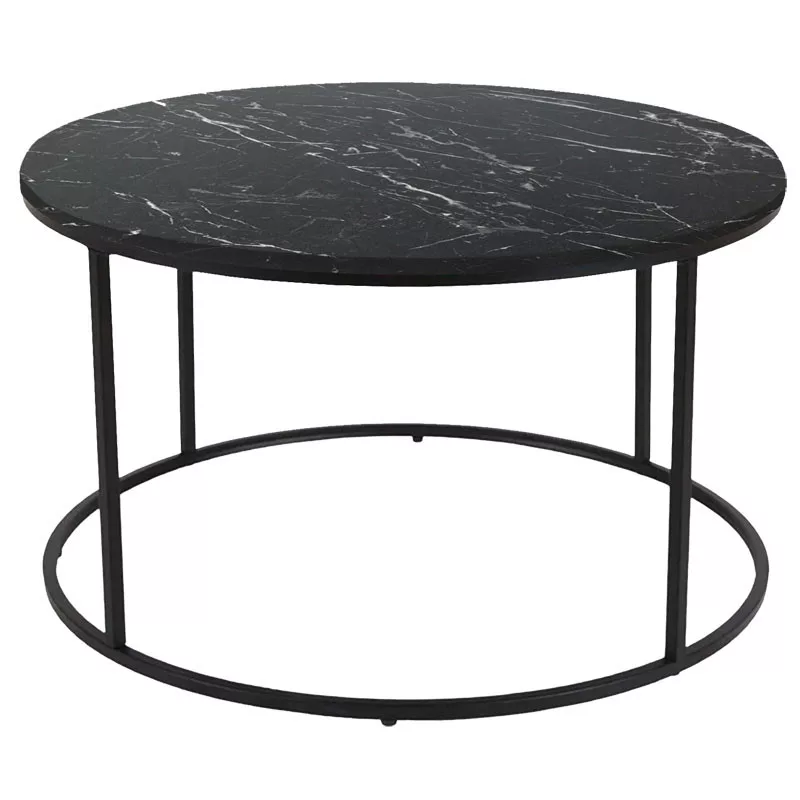 Emilian pakoworld melamine coffee table black marble-black metal Φ60x42cm