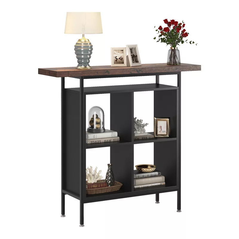 - It has a sleek and modern design that will complement any décor. The black metal frame and wooden shelves create a stylish contrast