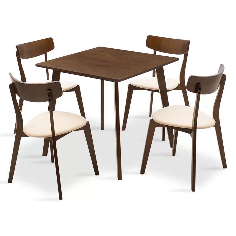 Dining set Benson - Toto pakoworld 5pcs 80x80x75cm in walnut - beige fabric