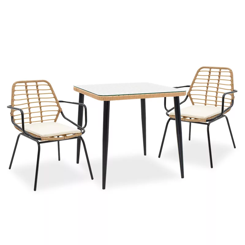 Naoki garden dining set 3pcs pakoworld metal black-pe natural