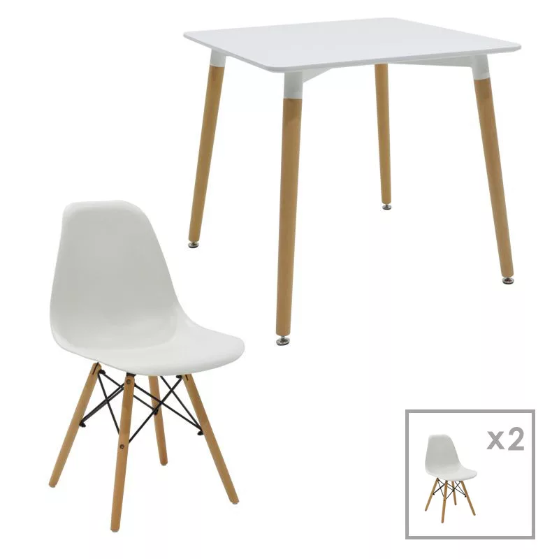Three piece set:1) Natali table square MDF color white 80x80x76cmSpecifications: