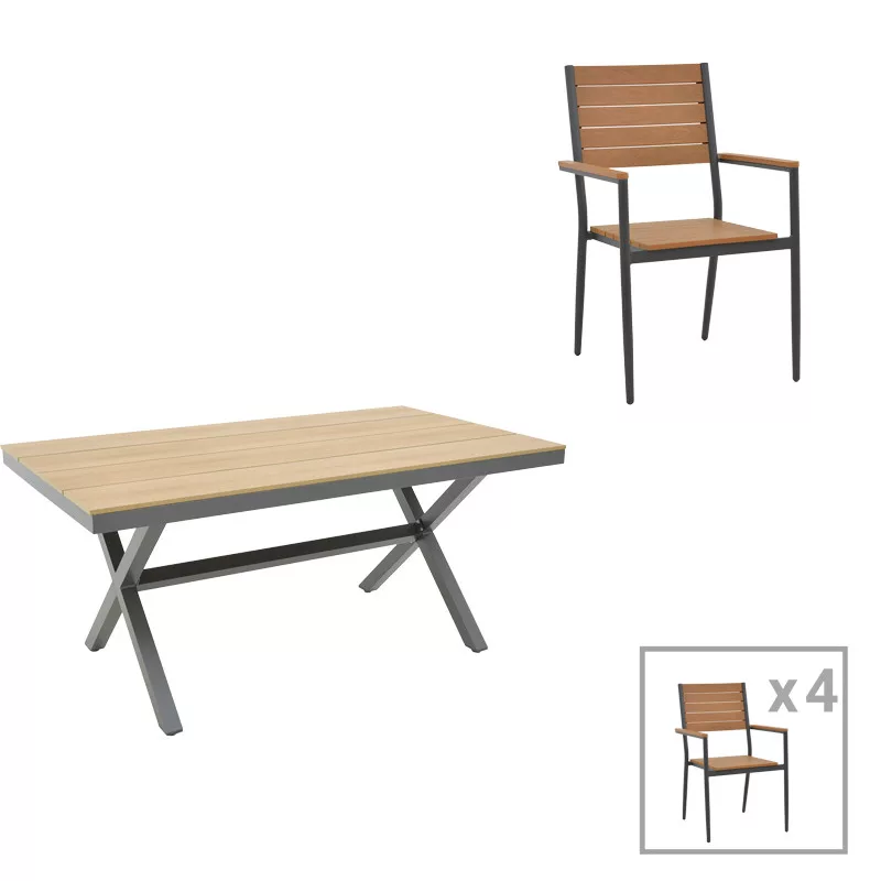 The set includes four armchairs and a tableTechnical characteristics of the table:• Mainly surface made of reinforced plywood of excellent quality with great resistance to wear and time.