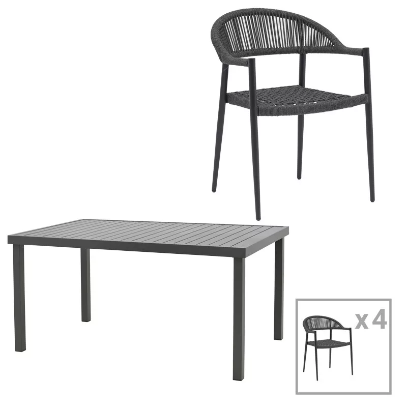 • Offered in charcoal color. The anthracite color gives the table a modern and elegant look that easily harmonizes with various styles of outdoor decoration. The simplicity and elegance of the black color accentuates the space and adds a touch of timeless elegance.
