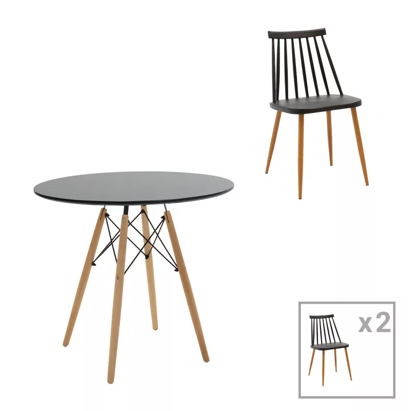Three-piece set:Julita pakoworld MDF table, black-natural legs, Ø80x73cmTechnical features: