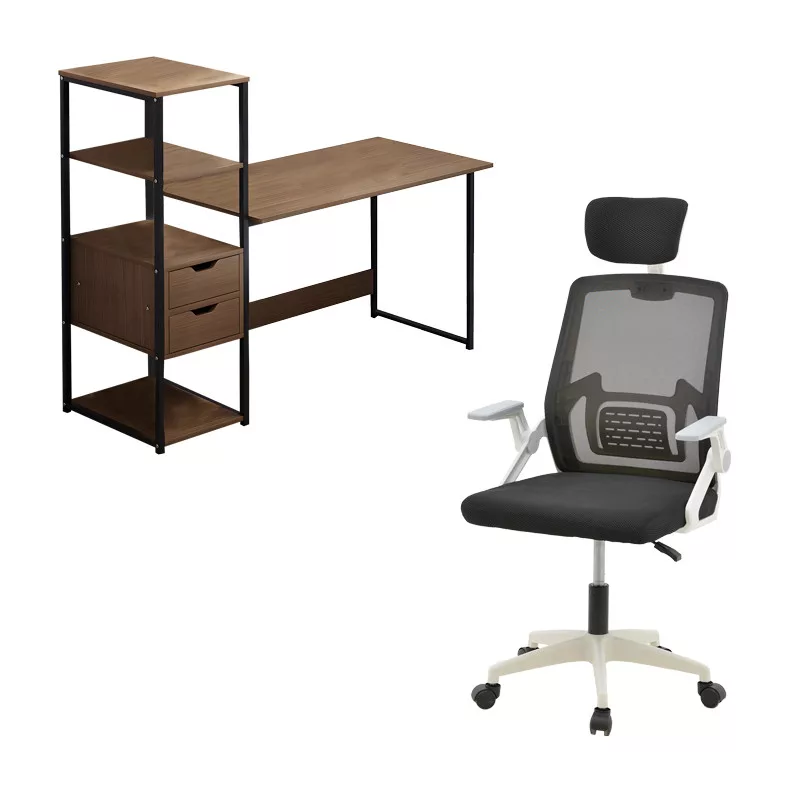 - Desk Zayn II pakoworld with shelf-MDF walnut-black 107x40x110 cm