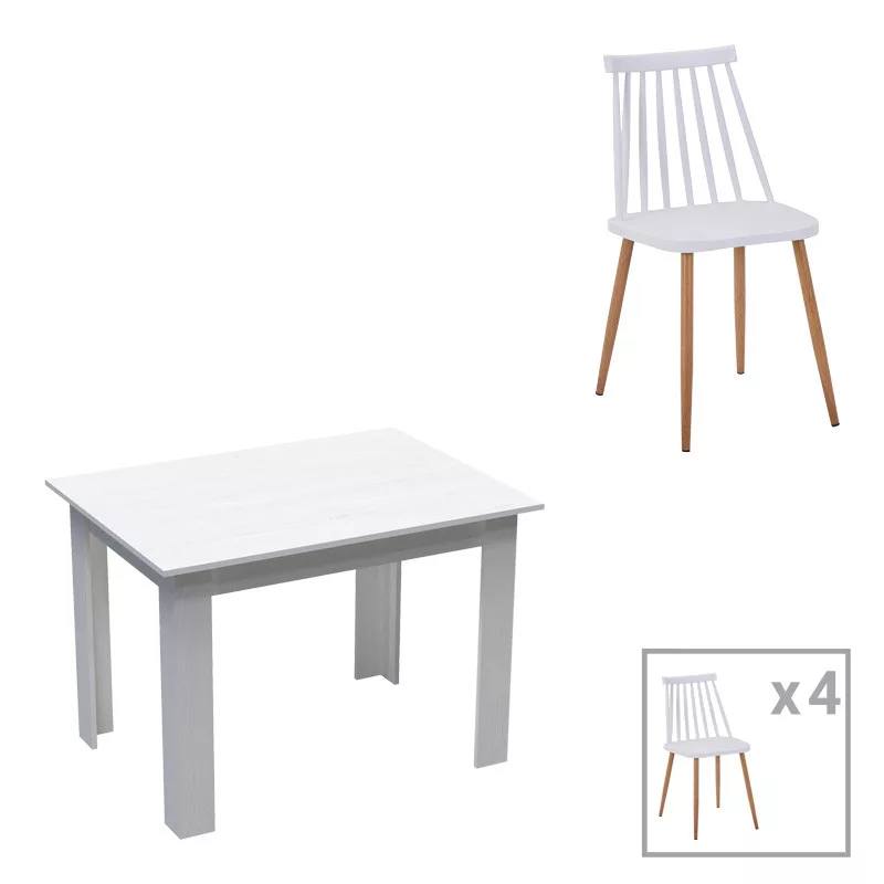 Refresh your dining room with this stylish and practical set that includes a spacious table and four comfortable chairs.