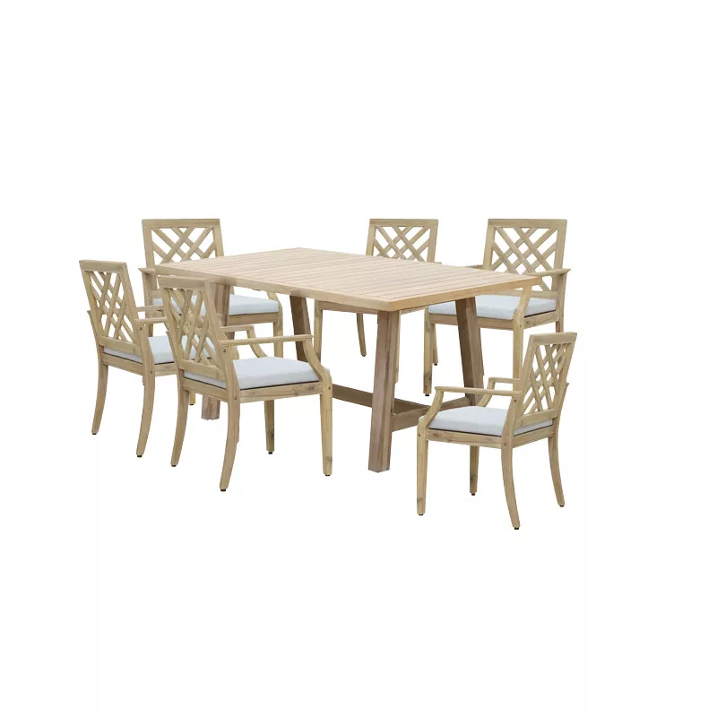 Dining table Malibu-Bolen pakoworld 7pcs solid acacia wood-beige fabric