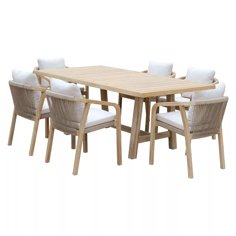 Poza-Malibu pakoworld dining table 7pcs solid acacia wood-beige fabric