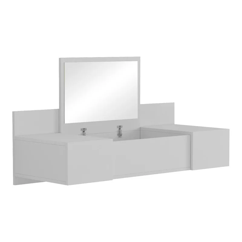 Introducing the latest trend in bedroom organization: the Paltar wall-mounted vanity! This stylish and functional piece of furniture is perfect for any sophisticated space, seamlessly blending into your bedroom decor with its minimalist and elegant design. Featuring a large, hinged mirror, it provides ample light for your makeup routine.