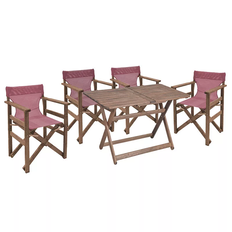 Garden dining Retto set 5 pcs solid beech wood walnut-dark red color 120x75x71cm