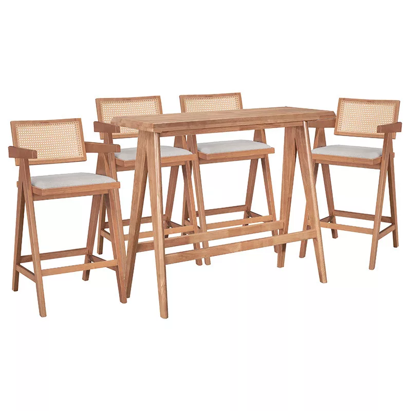 Bar dining table Winslow I pakoworld set of 5 rubberwood wood light walnut 120x45x100cm