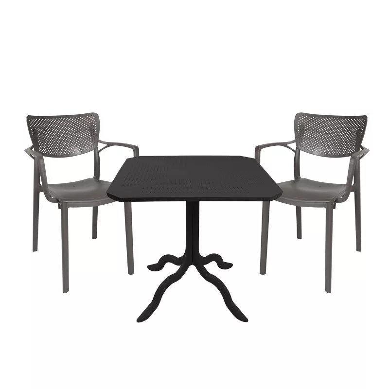 Icon-Frontline Garden Dining Set – 3-piece Set, PP Anthracite, 80x80x74.5cmLooking for a durable dining set for your balcony or garden that will elevate your outdoor space aesthetically? The Icon-Frontline set is the perfect choice, combining style with construction quality.