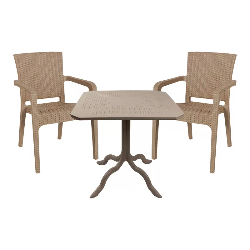 Icon-Halcyon Garden Dining Set – 3-piece Set, PP Cappuccino, 80x80x74.5 cmLooking for a durable dining set for your balcony or garden that will elevate the look of your outdoor space? The