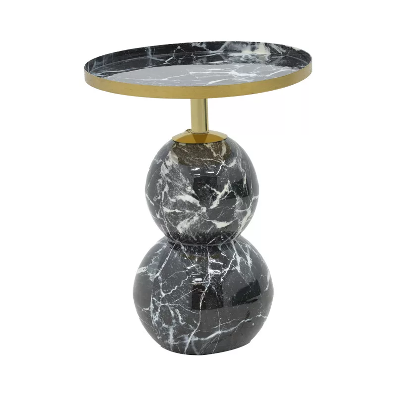 Side table Dearest Inart black marble-gold metal Φ41x57cm