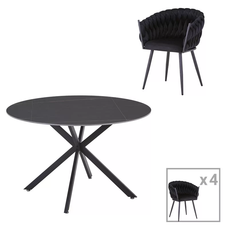 The set includes 1 table and 4 chairs.