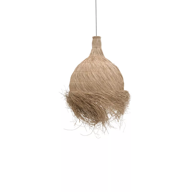 The Cazin ceiling light, crafted from natural mendong fiber, is a unique blend of natural beauty and modern design. The fiber’s texture and geometric shape create a warm and welcoming ambient light, adding an exotic aesthetic touch to any space.