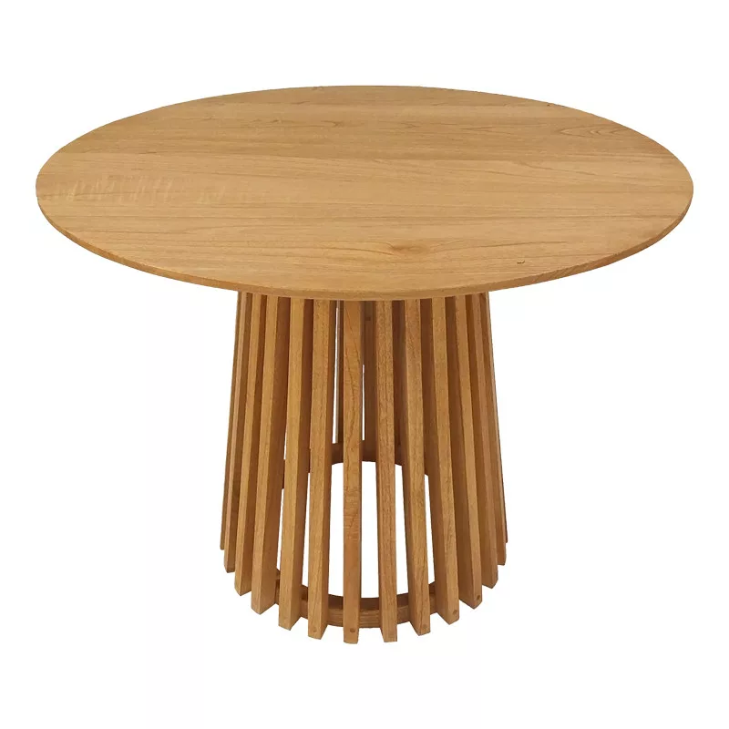 - Mindi wood: Mindi (also known as Melia azedarach, Chinaberry or Fraxinus) is a type of wood that comes from the Melia azedarach tree, which belongs to the Meliaceae family. It is a tropical tree that is widespread in many areas of Southeast Asia and Australia. It usually has a natural, warm hue ranging from light yellow to brown, with dark streaks. It has a straight, thin red ray and a dense, hard texture. It is widely used in the manufacture of furniture such as beds, tables, chairs and wardrobes, as well as in carpentry and is resistant to wear.