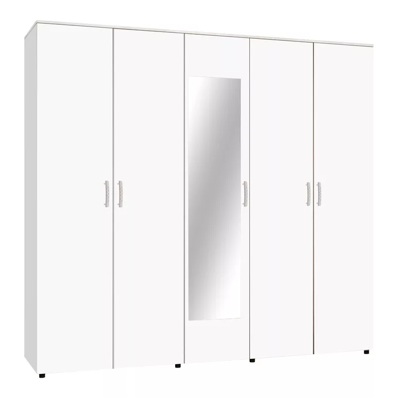 - Features five hinged doors and an integrated mirror.