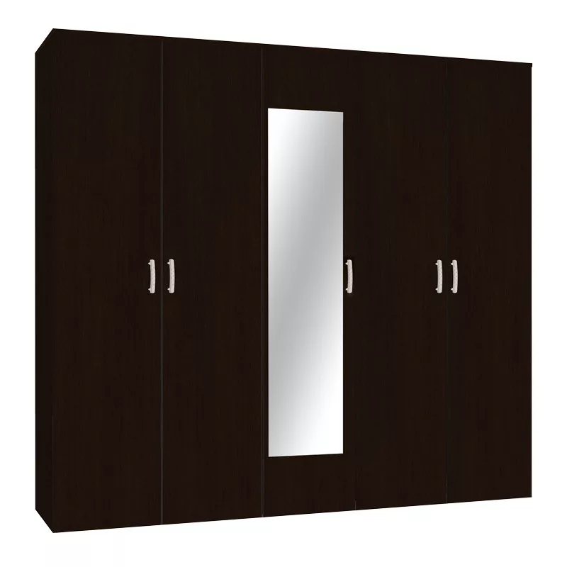 - Features five hinged doors and an integrated mirror.