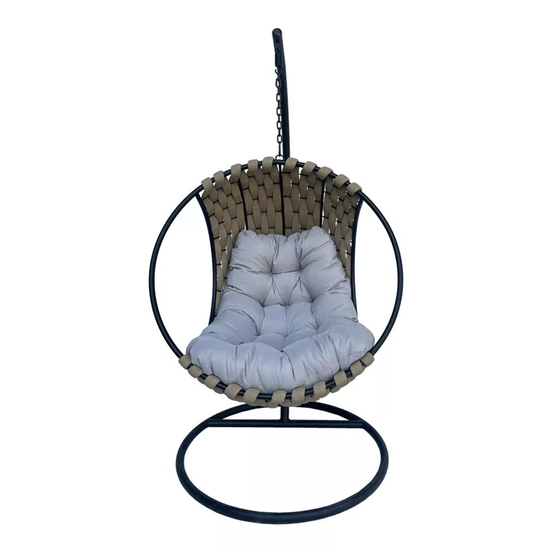 - Includes a cushion that fits perfectly with the swing's size. Made from fabric and offered in gray.