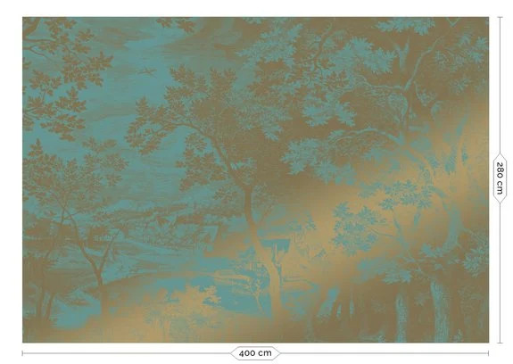 Gold metallic wall mural, Engraved landscapes, mint